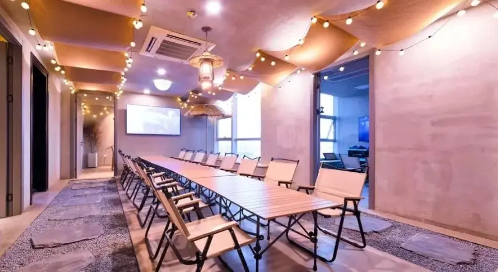 “我们这里的场地有1200平米,分为商务简约、经典欧式、赛博朋克多个特色,提供各类正餐、火锅、烤全羊、西式宴会餐等,最多可容纳350人。”echoo回声轰趴店的工作人员说,最近年会活动较多,需要提早一些预约:“这个周末基本已经满了。”